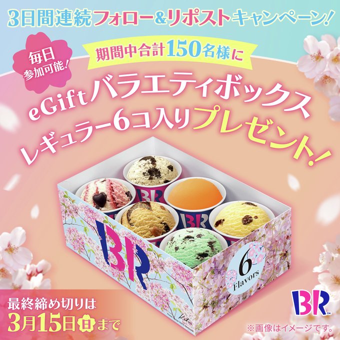 賞品:サーティワンアイスクリーム バラエティボックス(レギュラー)6コ入りeGift(合計150名様)
