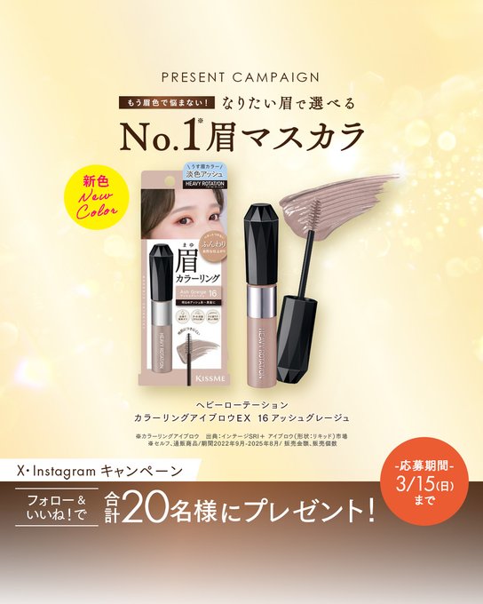 賞品:キスミー ヘビーローテーション カラーリングアイブロウEX 16 アッシュグレージュ(20名様)