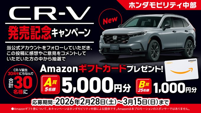 ホンダモビリティ中部‐公式Xフォロワー様限定 CR-V発売記念キャンペーン