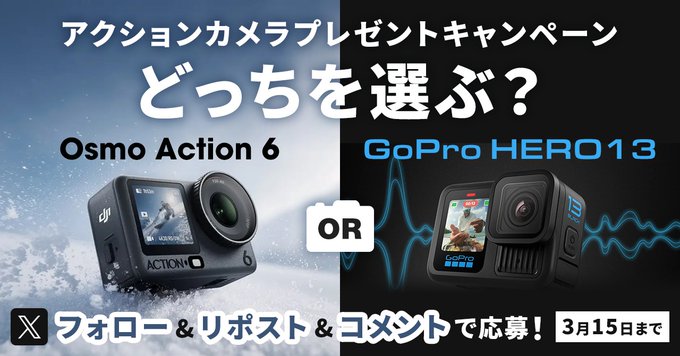 【X懸賞】Osmo Action 6、GoPro HERO 13を2名様にプレゼント