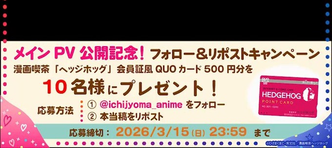 賞品:漫画喫茶「ヘッジホッグ」会員証風QUOカード(10名様)