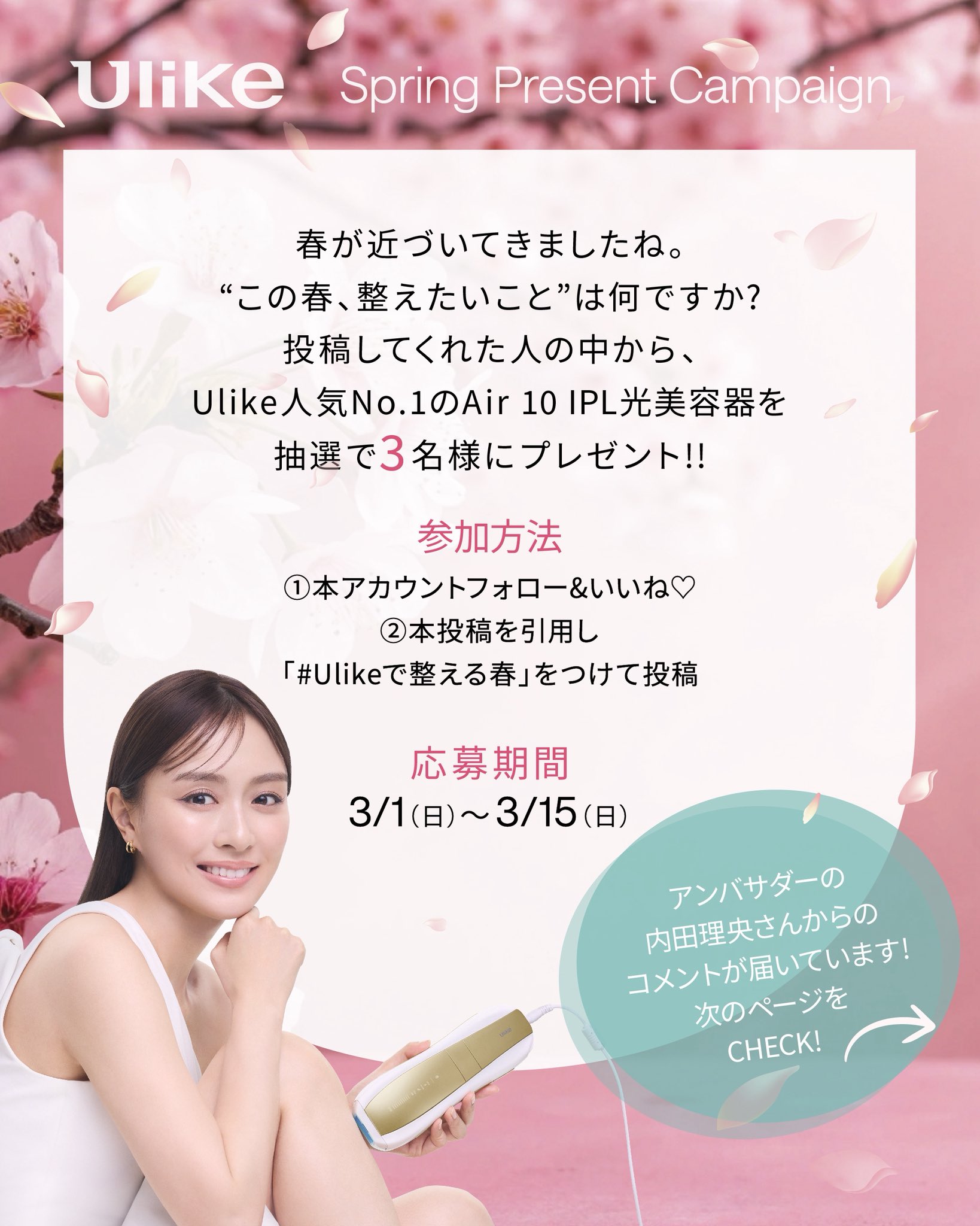 Ulike‐内田理央さんコラボ プレゼントキャンペーン
