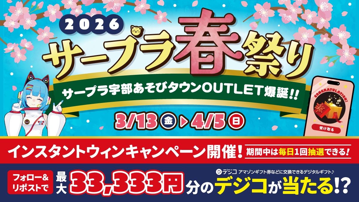 サープラ宇部あそびタウンOUTLET‐サープラ宇部あそびタウンOUTLETオープン記念キャンペーン