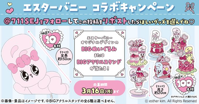 賞品:エスターバニーコラボ「BIGぬいぐるみ」「BIGアクリルスタンド」(110名様)
