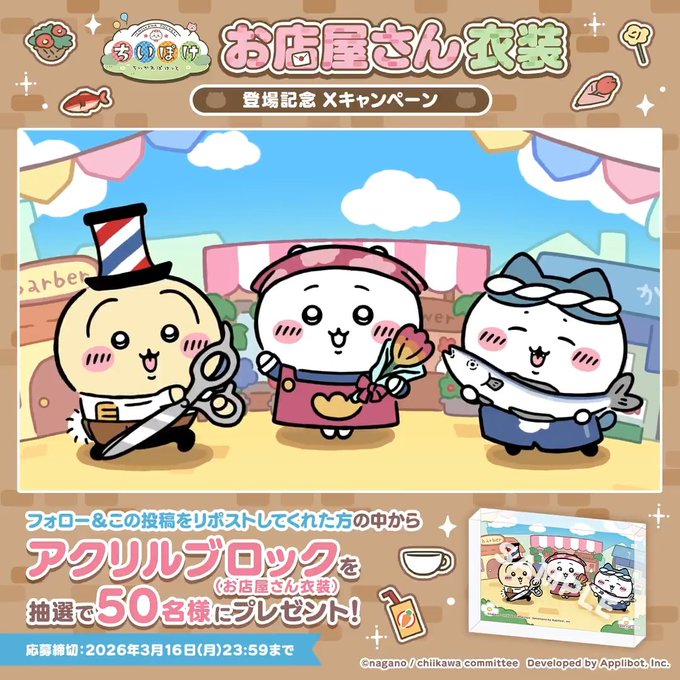 ちいかわぽけっと‐お店屋さん衣装 登場記念 Xキャンペーン