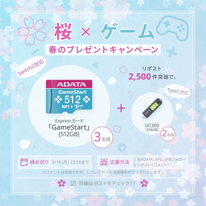 ADATA Japan‐桜×ゲーム 春のプレゼントキャンペーン