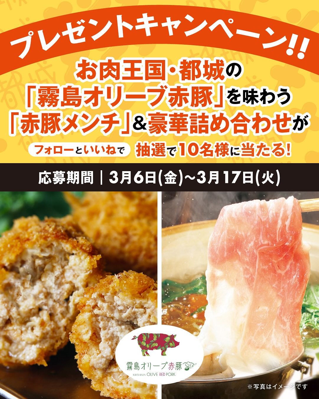 賞品:「霧島オリーブ赤豚」を堪能できるアイテム詰め合わせ(10名様)