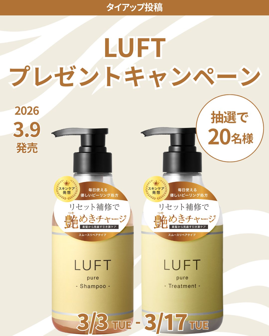 賞品:LUFTピーリングシャンプー&トリートメント(20名様)