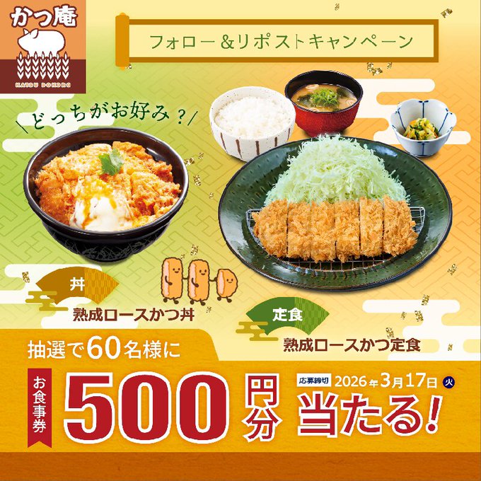【X懸賞】お食事券500円分を60名様にプレゼント