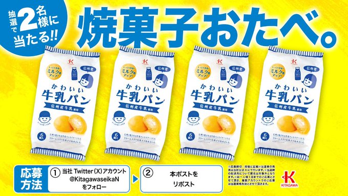 【X懸賞】かわいい牛乳パンセットを2名様にプレゼント 2026.03.15株式会社北川製菓‐ホワイトデーキャンペーン 賞品:かわいい牛乳パンセット(2名様) 締切:2026年3月17日(火)公式X(Twitter)アカウントをフォロー&キャンペーン対象ポストをリポストしてご応募ください。※詳細はキャンペーンページにてご確認ください。応募はこちらから