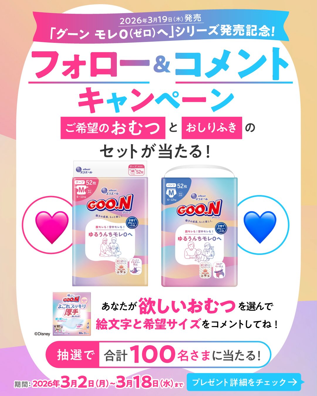 賞品:おむつとおしりふきのセット(100名様)