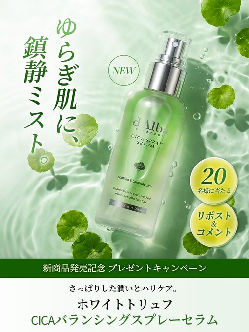 賞品:ホワイトトリュフCICAバランシングスプレーセラム&CICAカーミングマスク(1枚)(20名様)