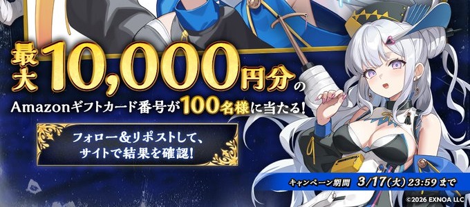 賞品:Amazonギフト券最大10,000円分(100名様)