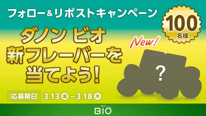 賞品:ダノン ビオ 新フレーバー2パック(100名様)