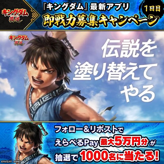 キングダム 覇道公式Xアカウントをフォロー&キャンペーン対象ポストをリポストしてご応募ください。