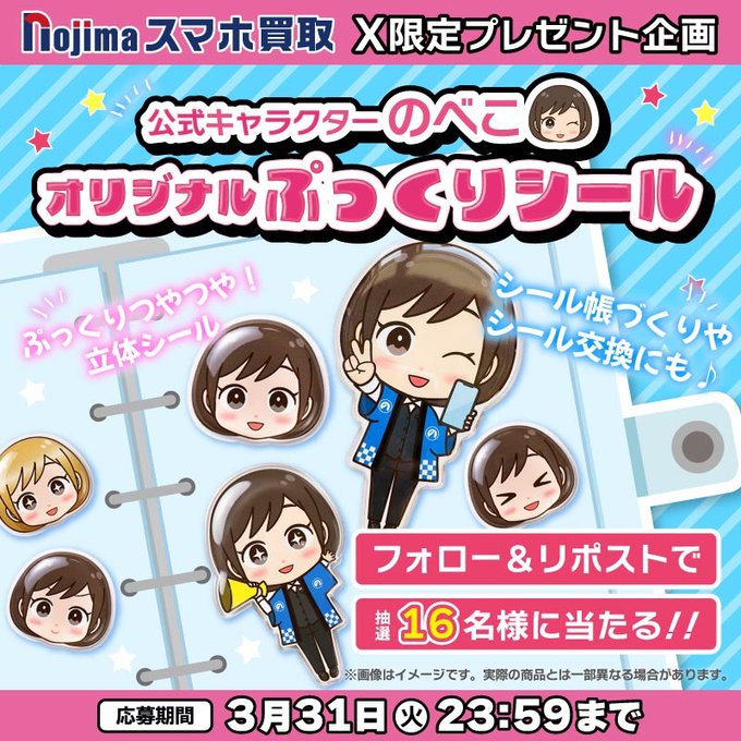 【毎日・X懸賞】ノジマのスマホ買取公式キャラクター「のべこ」のぷっくりシールを16名様にプレゼント
