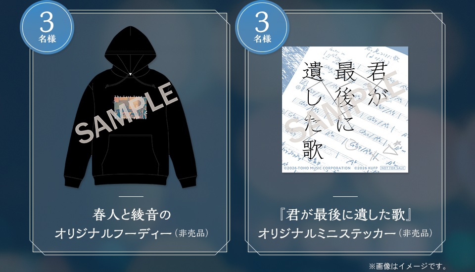賞品:『君が最後に遺した歌』オリジナルフーディー、オリジナルミニステッカー(合計6名様)
