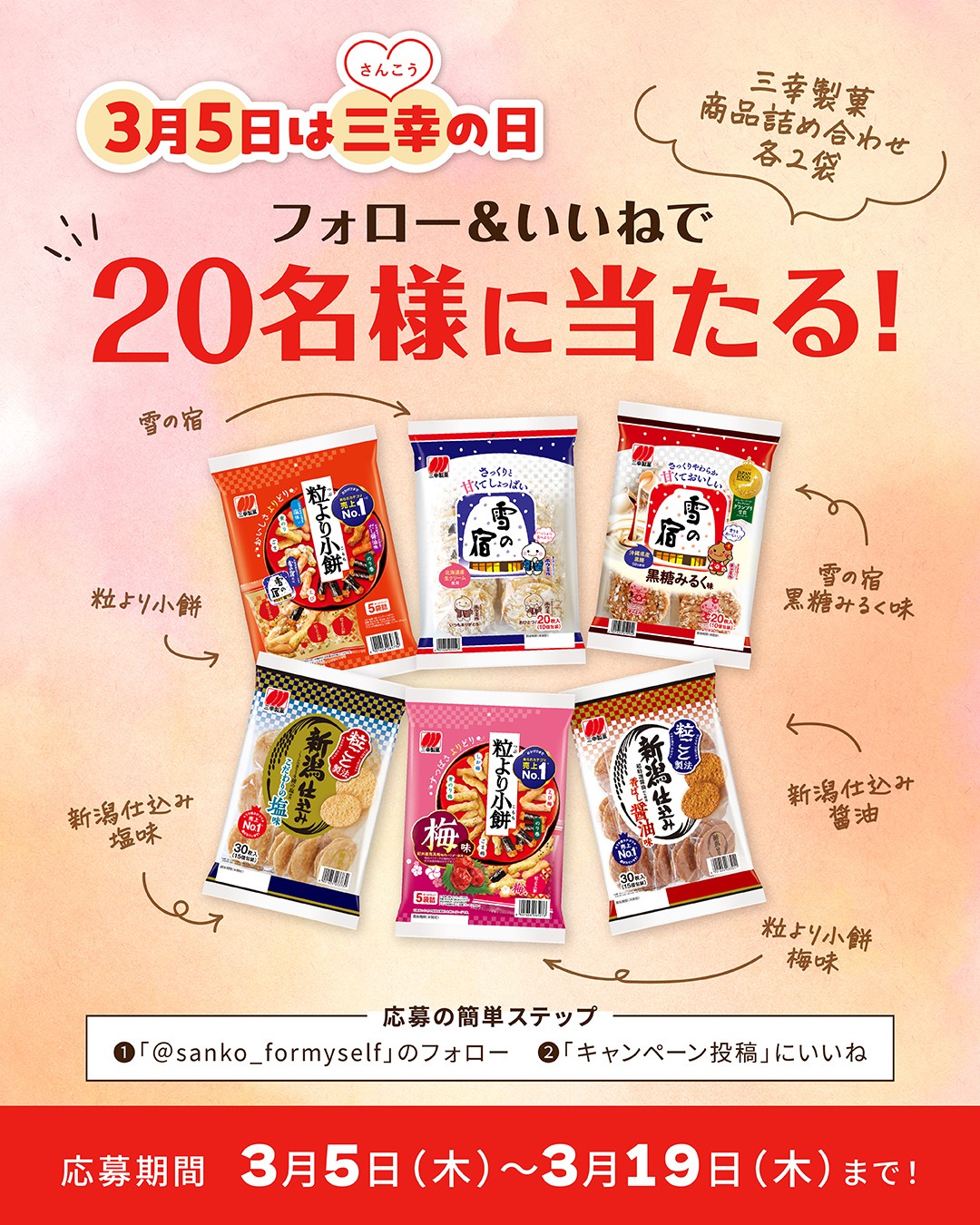 【Instagram懸賞】三幸製菓 商品詰め合わせを20名様にプレゼント