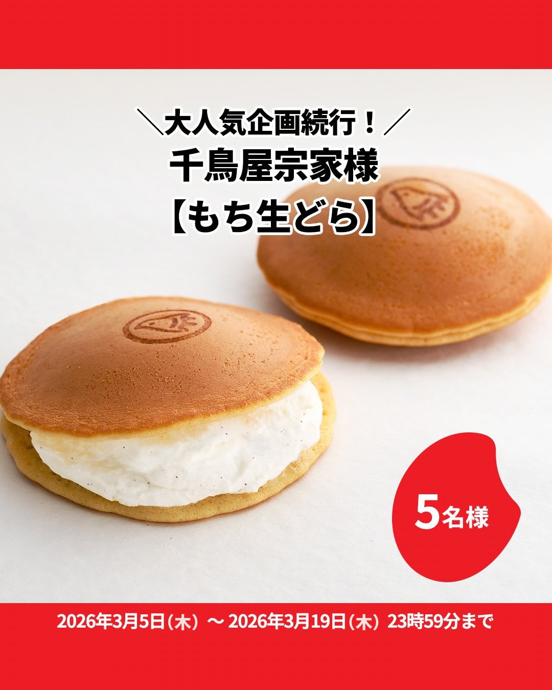 賞品:千鳥屋宗家 もち生どら(5名様)