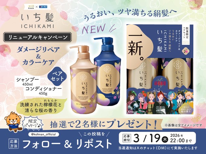 賞品:いち髪 ダメージリペア&カラーケア ペアセット(2名様)