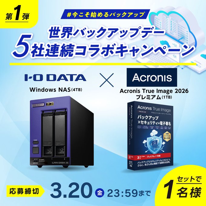 @io_dataと@Acronis_Japanをフォロー&キャンペーン対象ポストをリポストしてご応募ください。