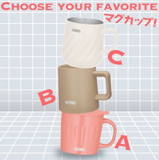② 使ってみたいマグカップを3つのうちから選んで、A、B、Cのいずれかをコメント
