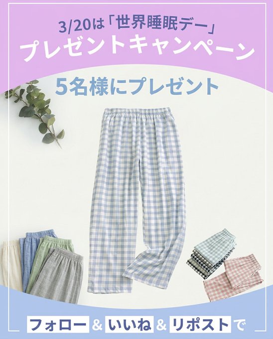 賞品:VEIMIAのルームパンツ(5名様)