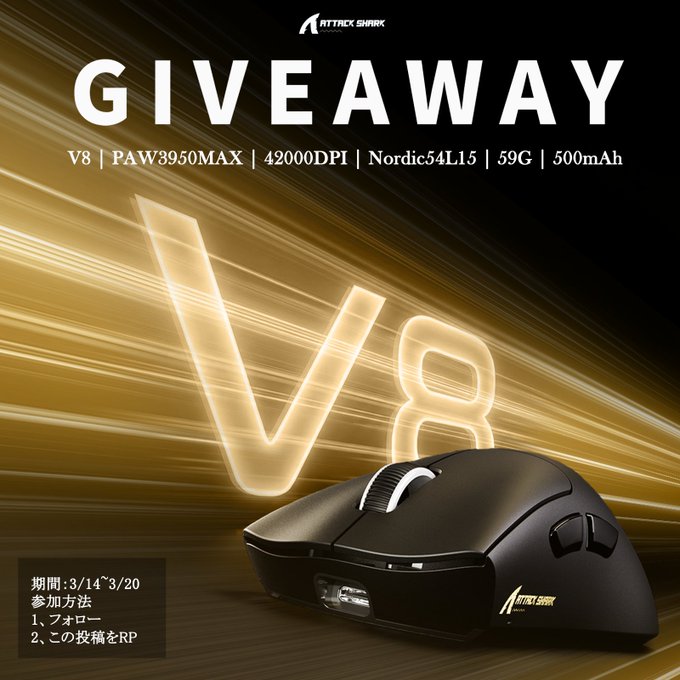 賞品:ATTACK SHARK V8 ゲーミングマウス(1名様)