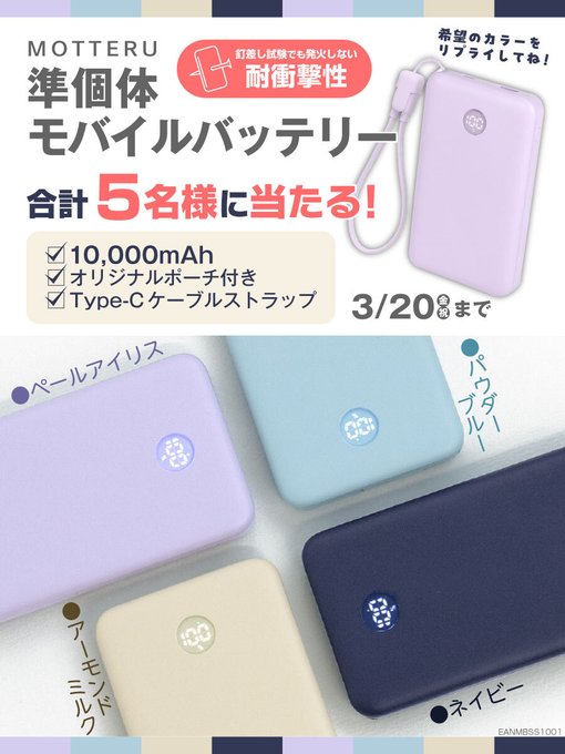 賞品:MOTTERU 準個体モバイルバッテリー(5名様)