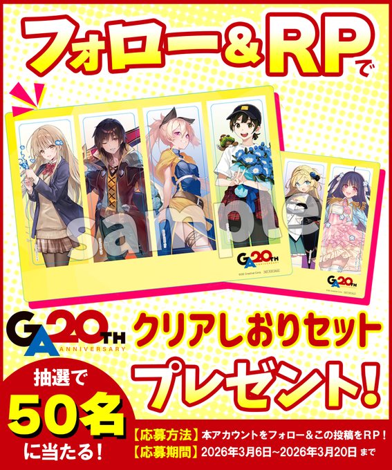 【X懸賞】特製クリアしおりセットを50名様にプレゼント 2026.03.19GA文庫‐フォロー&リポストキャンペーン 賞品:特製クリアしおりセット(50名様) 締切:2026年3月20日(金)公式X(Twitter)アカウントをフォロー&キャンペーン対象ポストをリポストしてご応募ください。※詳細はキャンペーンページにてご確認ください。応募はこちらから