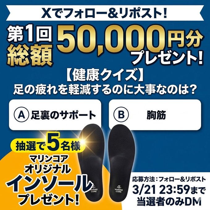 【X懸賞】マリンコアオリジナルインソールを5名様にプレゼント