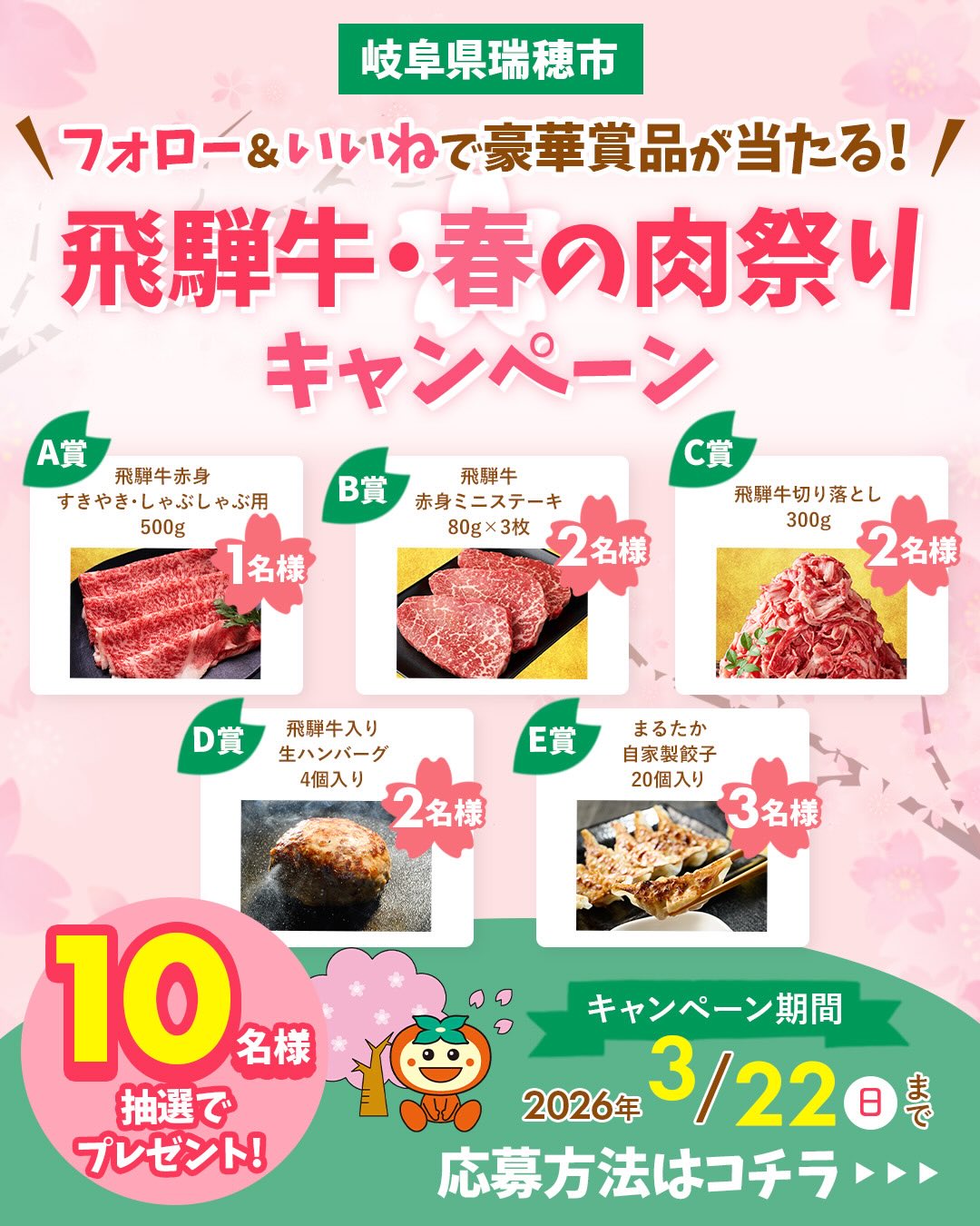賞品:瑞穂市の特産品、飛騨牛の豪華賞品(10名様)