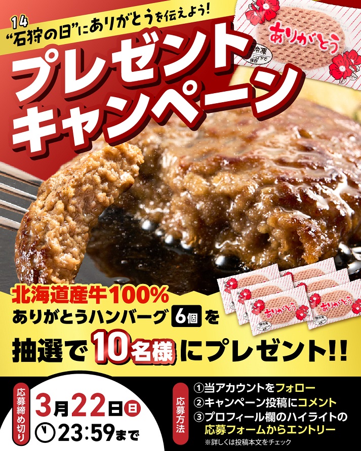 賞品:ありがとうハンバーグ6個入(ホクビー)(10名様)