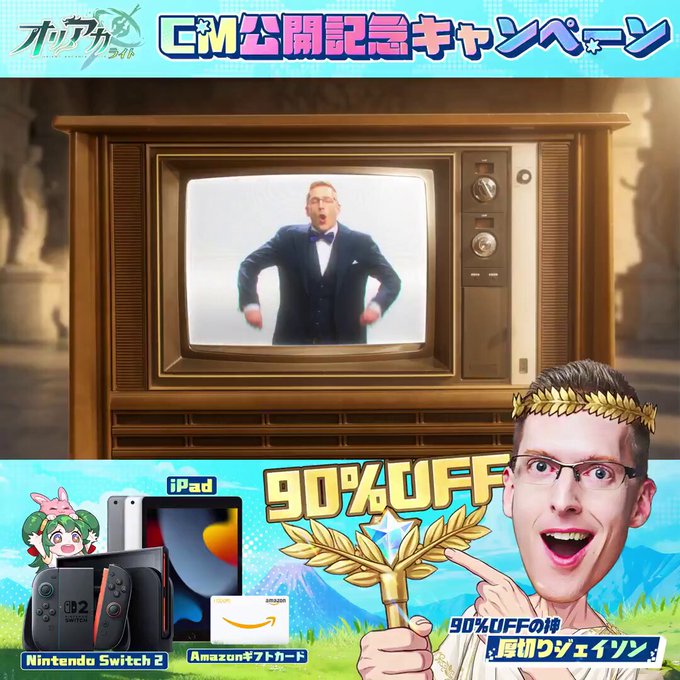 【X懸賞】Amazonギフト券1,000円分を3名様にプレゼント 2026.03.19オリエント・アルカディア:ライト‐プレゼントキャンペーン 賞品:Amazonギフト券1,000円分(3名様) 締切:2026年3月22日(日)①フォロー&RP ②事前登録画面スクショ投稿※詳細はキャンペーンページにてご確認ください。応募はこちらから