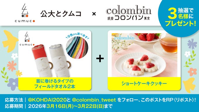 @KOHDAI2020と@colombin_tweetをフォロー&キャンペーン対象ポストをリポストしてご応募ください。