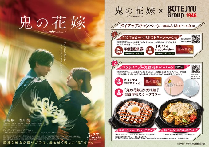 映画 『鬼の花嫁』× 「ぼてぢゅう® グループ」 映画公開記念キャンペーン