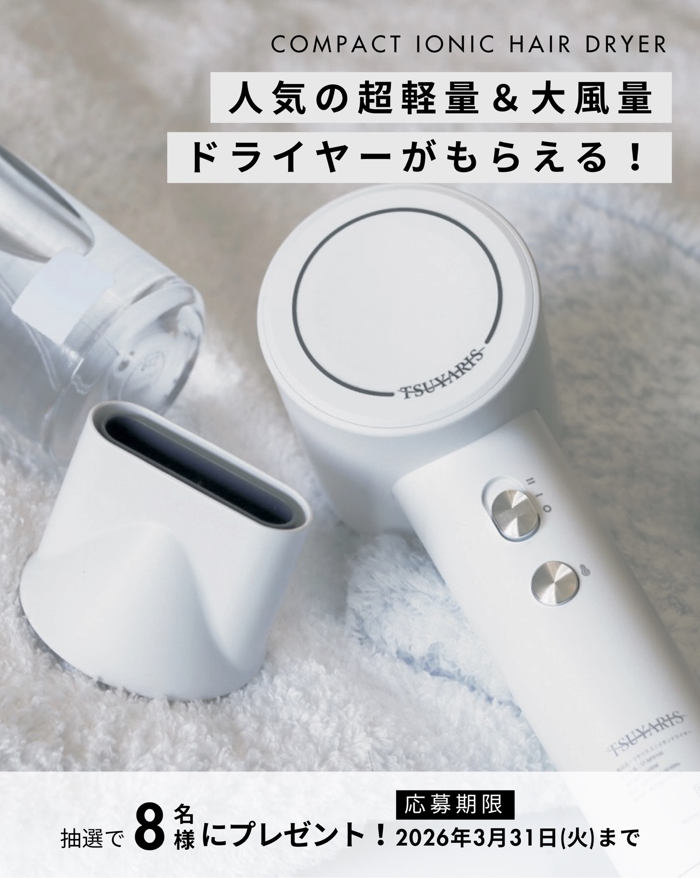 賞品:TSUYARIS コンパクトイオンドライヤー(8名様)