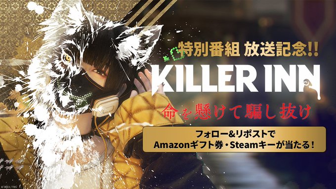 賞品:Amazonギフト券5,000円分、KILLER INNのSteam無料ゲームキー(合計6名様)