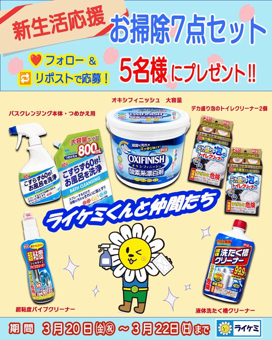 賞品:お掃除まとめて7点セット(5名様)