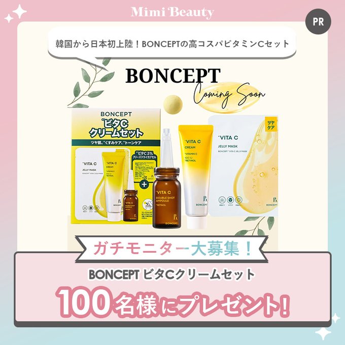 【X懸賞】BONCEPT ビタCクリームセットを100名様にプレゼント 2026.03.20Mimi Beauty‐ガチモニター企画 賞品:BONCEPT ビタCクリームセット(100名様) 締切:2026年3月22日(日)応募条件 ・商品体験頂ける方 ・公開のXアカウントをお持ちの方※詳細はキャンペーンページにてご確認ください。応募はこちらから