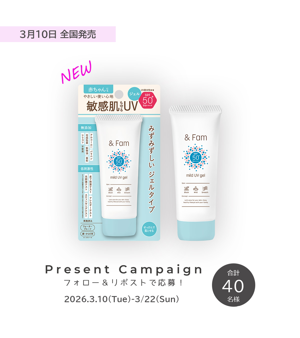 【X・Instagram懸賞】アンド ファム マイルドUVジェルを40名様にプレゼント 2026.03.20ELIZABETH(エリザべス)‐プレゼントキャンペーン 賞品:アンド ファム マイルドUVジェル(40名様) 締切:2026年3月22日(日)X・Instagram 合計40名様にプレゼント🎁※詳細はキャンペーンページにてご確認ください。応募はこちらから