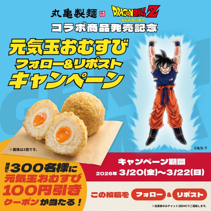 『丸亀製麺』『ドラゴンボール Z』元気玉おむすび フォロー&リポストキャンペーン
