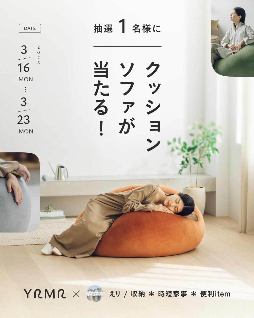 賞品:YURUMARUクッションソファ(1名様)