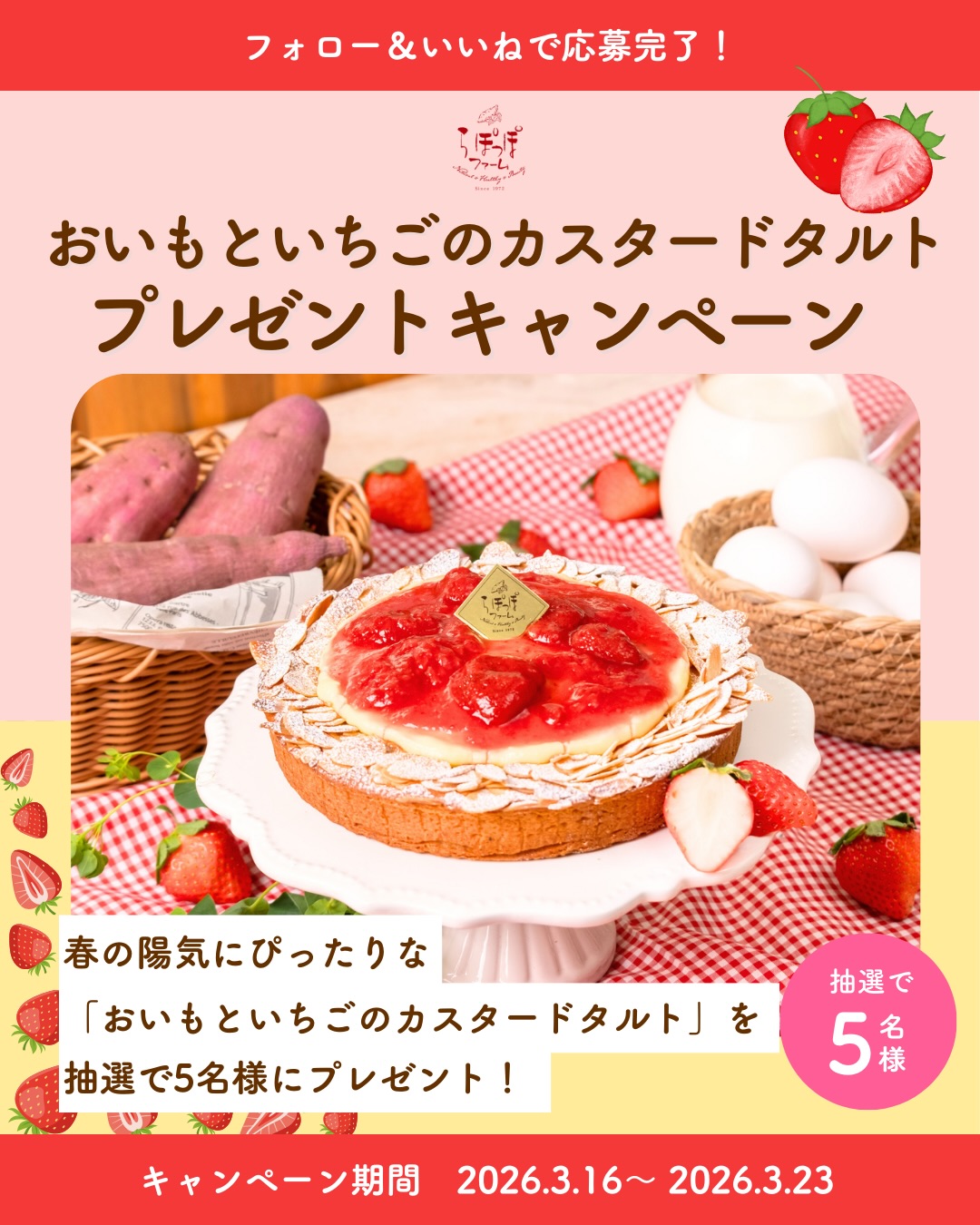 賞品:おいもといちごのカスタードタルト(5名様)