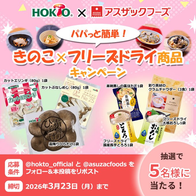 ホクト‐パパっと簡単!きのこ×フリーズドライ商品プレゼントキャンペーン