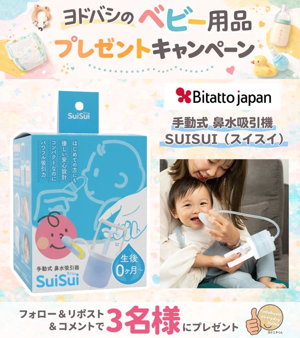 賞品:ビタットジャパン 手動式 鼻水吸引器 SuiSui(スイスイ)(3名様)
