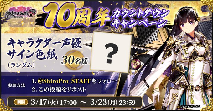 賞品:キャラクター声優サイン色紙(30名様)