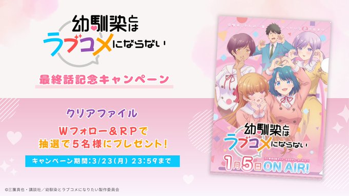 【X懸賞】TVアニメ『幼馴染とはラブコメにならない』クリアファイルを5名様にプレゼント