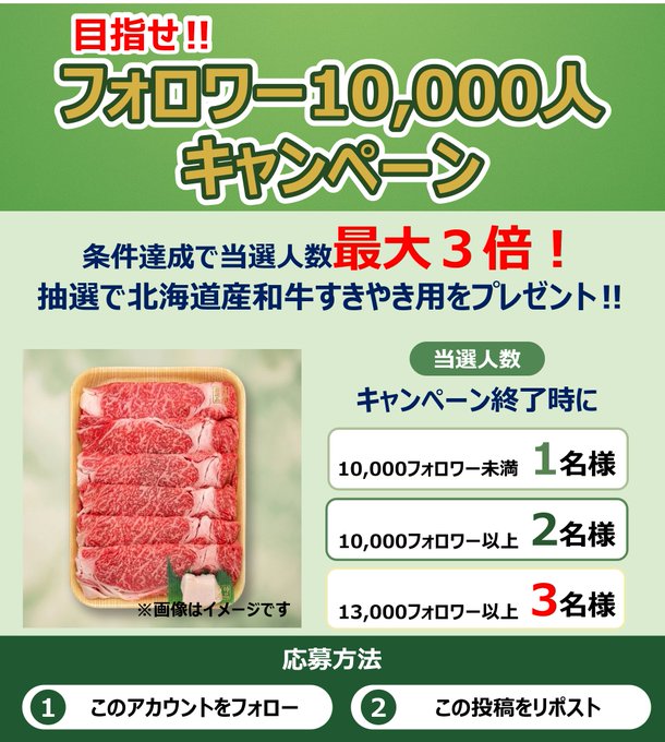 賞品:北海道産和牛すき焼き用(最大3名様)