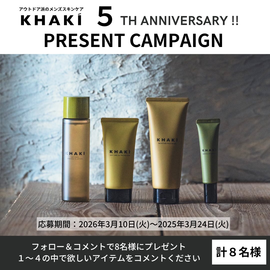 KHAKI‐アウトドア派のスキンケアKHAKI ローンチ5周年記念キャンペーン